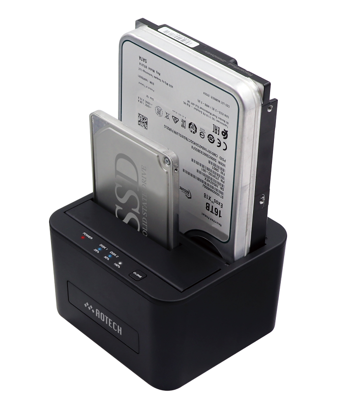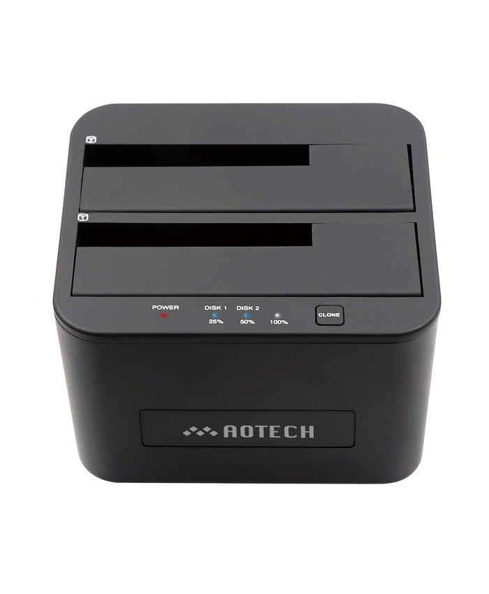 パソコン無しでクローン(複製)ができるHDD/SSDスタンドAOTECH クローンHDD/SSDスタンドは、パソコンに接続する必要が無く、本体にセットしたHDD/SSD内のデータを簡単にクローン(複製)することができます。新しいドライブへのデータ引っ越しや大切なデータのバックアップまで本製品1台で作業することができます。