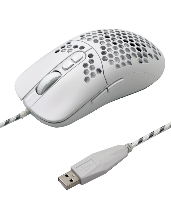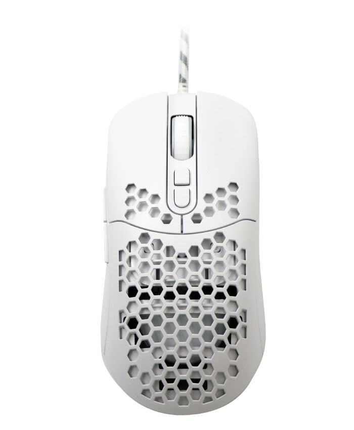 本製品は、軽量と強度を両立させるハニカム構造となっております。強度を保ちながら無駄な部分をそぎ落とした本体は、重量約75gながらしっかりとした重厚感とフィット感が有り様々なゲーミングシーンで素早いマウス操作をサポートします。
