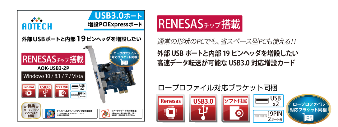 | 梱包内容 | 製品本体、日本語マニュアル、AOS特別体験版CD ロープロファイル型パソコン用ブラケット、ドライバーCD |