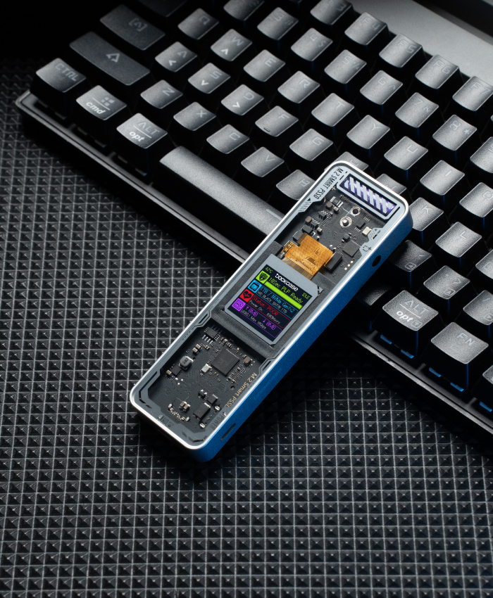 様々な情報が確認できる1.33インチIPS液晶搭載視認性・発色が非常に綺麗な1.33インチIPS液晶にSSDのインフォメーションを表示することができます。本体側面の表示切替ボタンを押せば、メイン画面からヘルスチェックなどそれぞれの詳細画面へ移行できます。SSDの製品情報や接続状況、温度なども表示可能で、各種設定することも可能です。