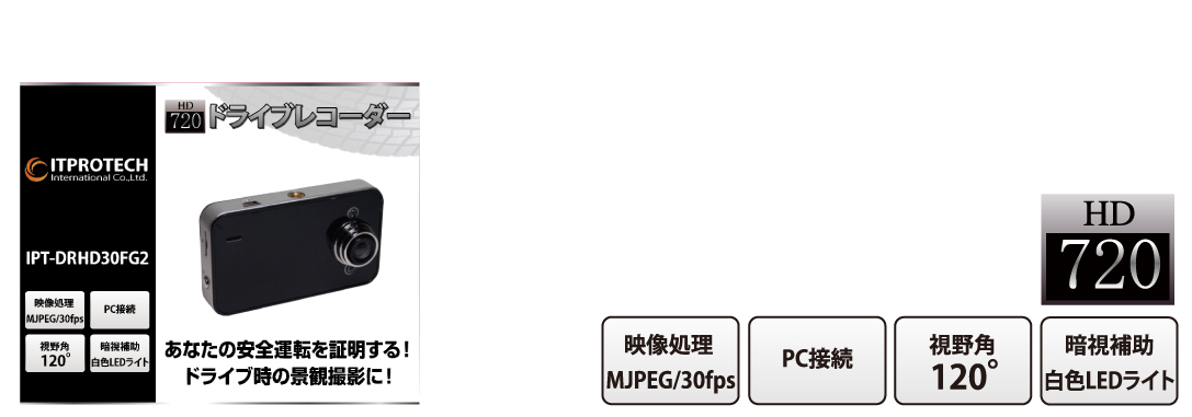 | 型番 | IPT-DRHD30FG2 | 撮像素子 | 30万画素 CMOSセンサー |