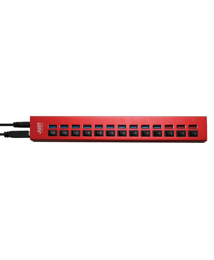 USB3.0×10ポート&充電専用×3ポート装備のハイブリッドハブ!「JUSTロゴ入 オールスイッチ式 ハイブリッド USB3.0ハブ」は USB3.0×10ポート/充電専用×3ポートを装備したハイブリッドハブです。
