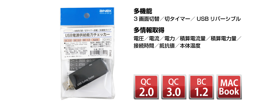 | ジャストマイショップ USB電源供給能力チェッカー KM-04 |