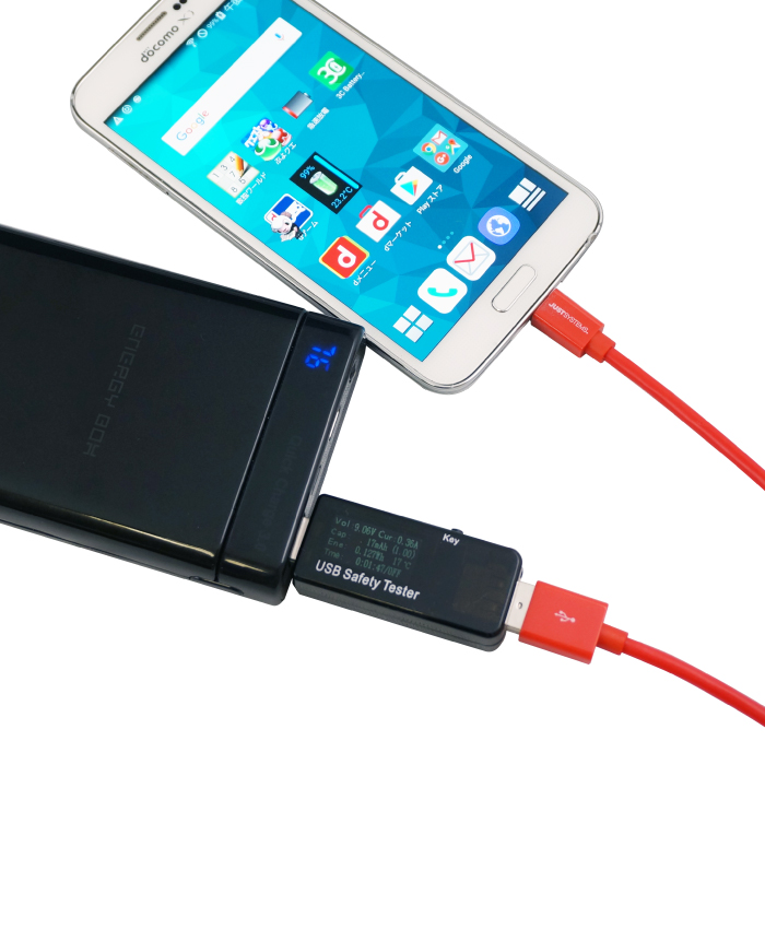 USB機器の不具合チェックやUSB充電器の性能確認に最適!USBでつながる機器を通る電流と電圧を簡単に計測することができます。
