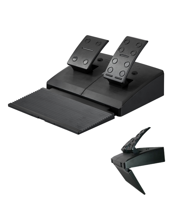 フットペダルにはアナログ感知式を採用し、リアリティあふれる操作感を実現。さらに収納されたフットレストを引き出すことで、ユニットの安定性を向上し安定した操作性を確保できます。