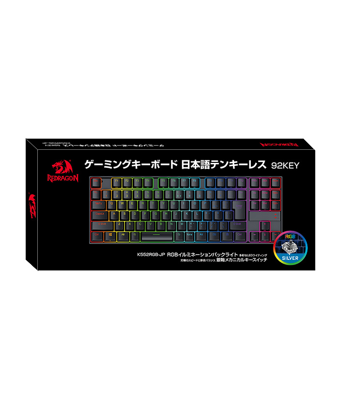 ゲーミングに特化したテンキーレス日本語配列日本語レイアウトの92キーが幅353×奥行124×高38㎜サイズに配列されているゲーミングキーボードです。省スペースで大人気のテンキーレスキーボードでシンプルにゲームをプレイする目的でデスクをより広く使うことができます。